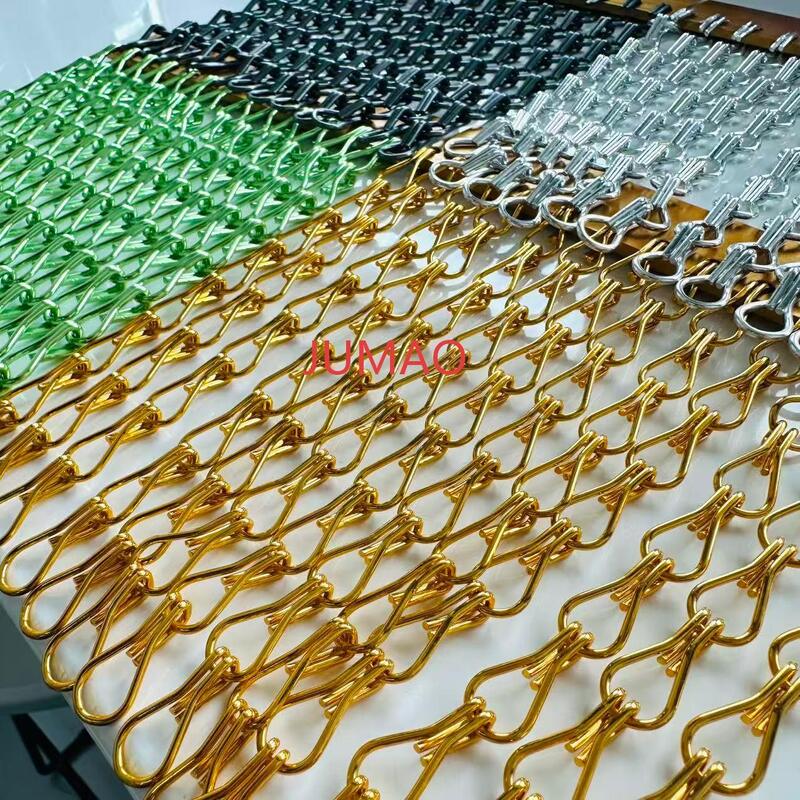 JUMAO Metal Mesh presenteert het JM-003 metalen keten schakel gordijn, een multifunctionele decoratieve oplossing vervaardigd in Shenzhou, China.Met een elektroplaqueerde aluminiumconstructie en een elegant profielMet een breedte van 100 cm en een schakelgrootte van 10 mm is dit model uitstekend in zowel decoratieve als functionele functies.